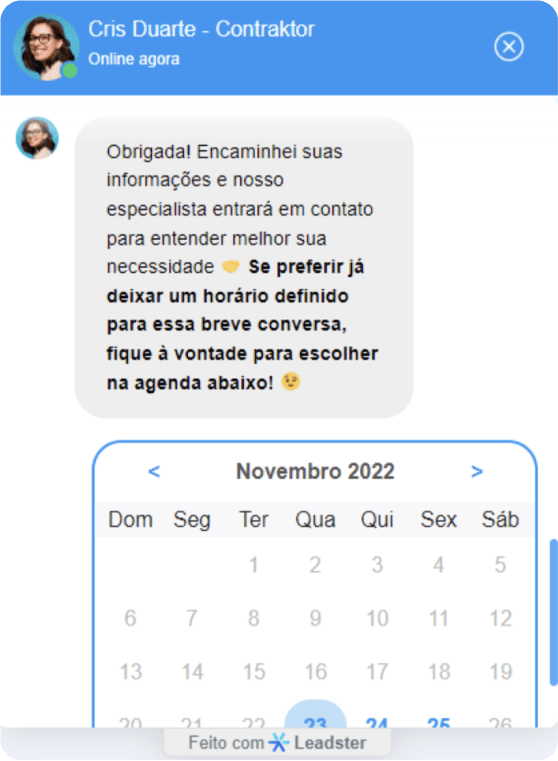 Cliente Leadster desde agosto de 2021, a Contraktor já utilizava as estratégias do nosso chatbot para geração de leads há algum tempo.