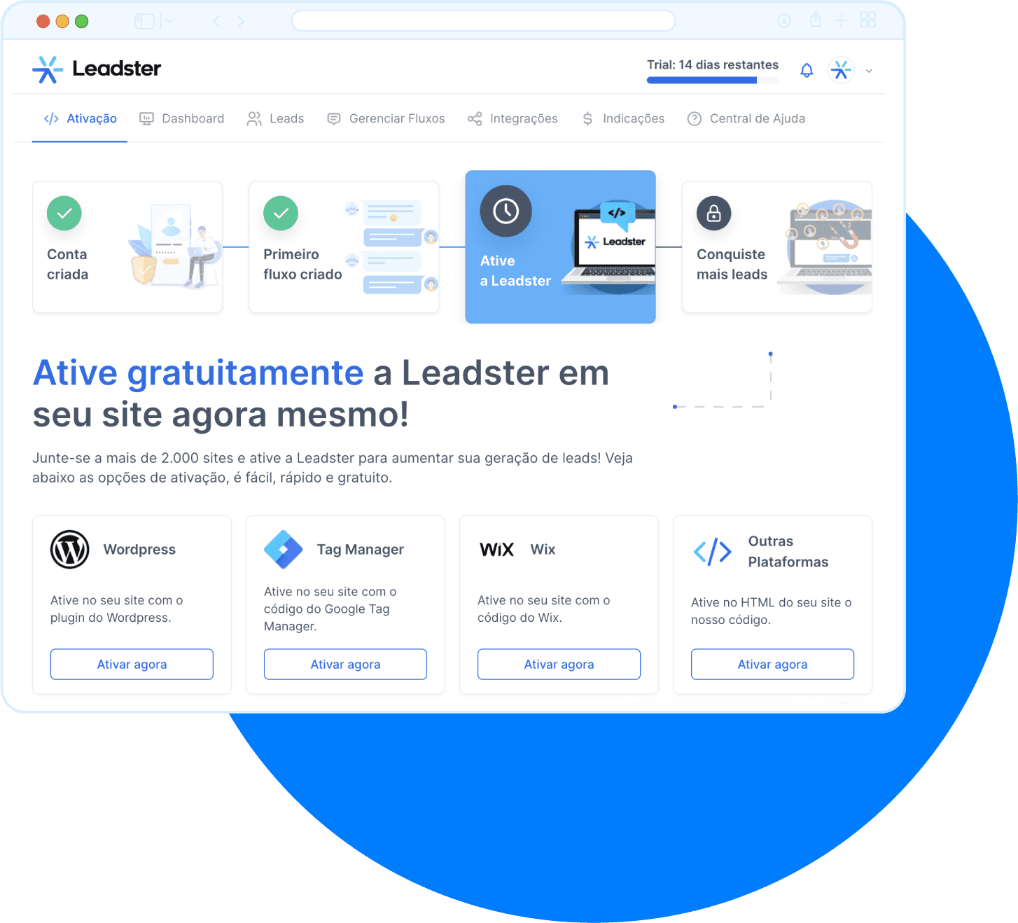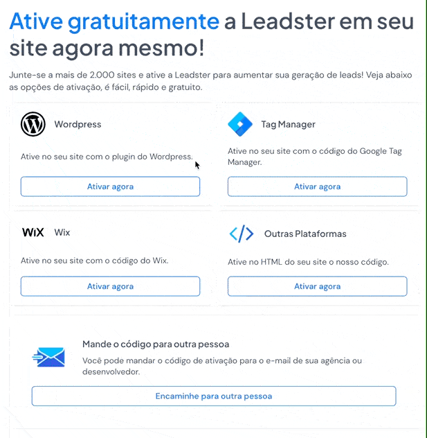 De acordo com David, o processo de implementação foi bastante simples, “feito em minutos”, sendo que em poucos passos já conseguiu adicionar a Leadster ao site do cliente.