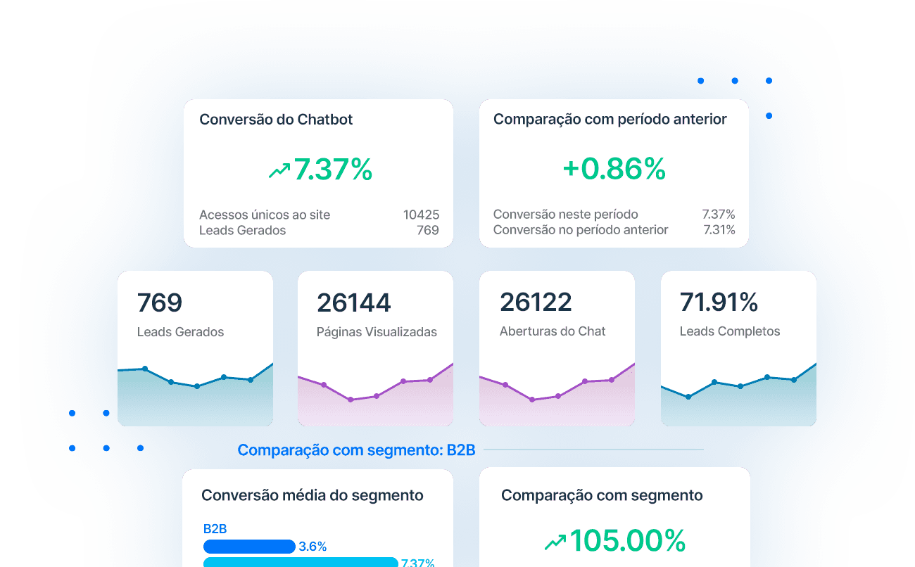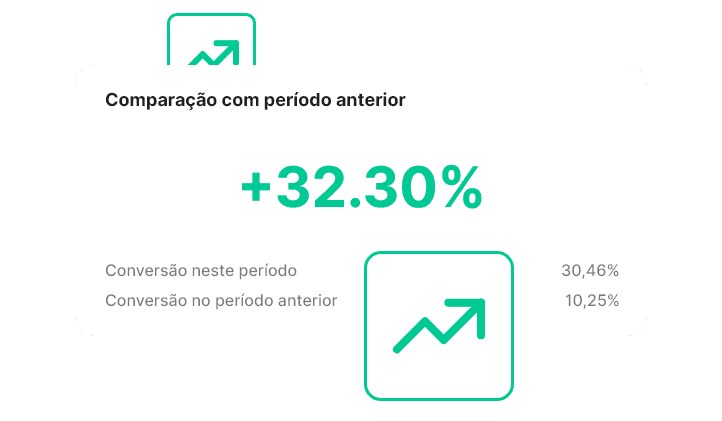 Por ali, ele consegue monitorar de forma simples as principais métricas (como taxa de conversão, leads qualificados e contatos enviados para o WhatsApp), além de comparar seu desempenho com os concorrentes.